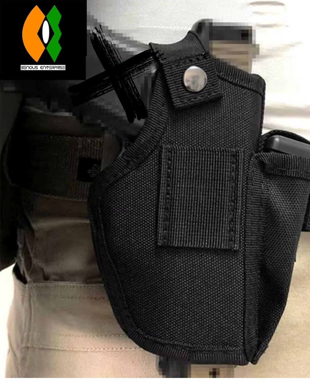 - Pratique et accessible : L'étui est doté d'un système de fermeture sécurisé, permettant à l'utilisateur d'accéder rapidement et facilement à son arme à feu en cas de besoin. Cette conception permet également à l'utilisateur de fixer des équipements supplémentaires, tels que des outils ou une lampe de poche, au système Molle ;