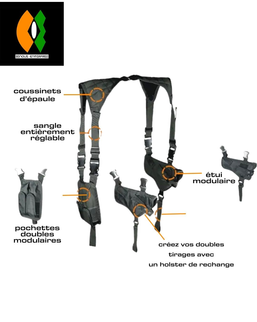 Étui d'épaule de haute qualité et très bien conçu avec des fonctionnalités chargées.